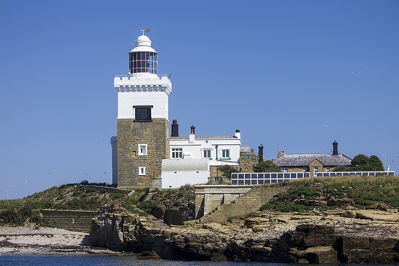 Coquet is an island that lies just one mile off the Northumberland coast (NE England) and a short boat ride away from the fishing port of Amble.  The current lighthouse, built by Trinity House in 1841, consists of a sandstone tower with castellations around the upper gallery and additional accommodation sections.