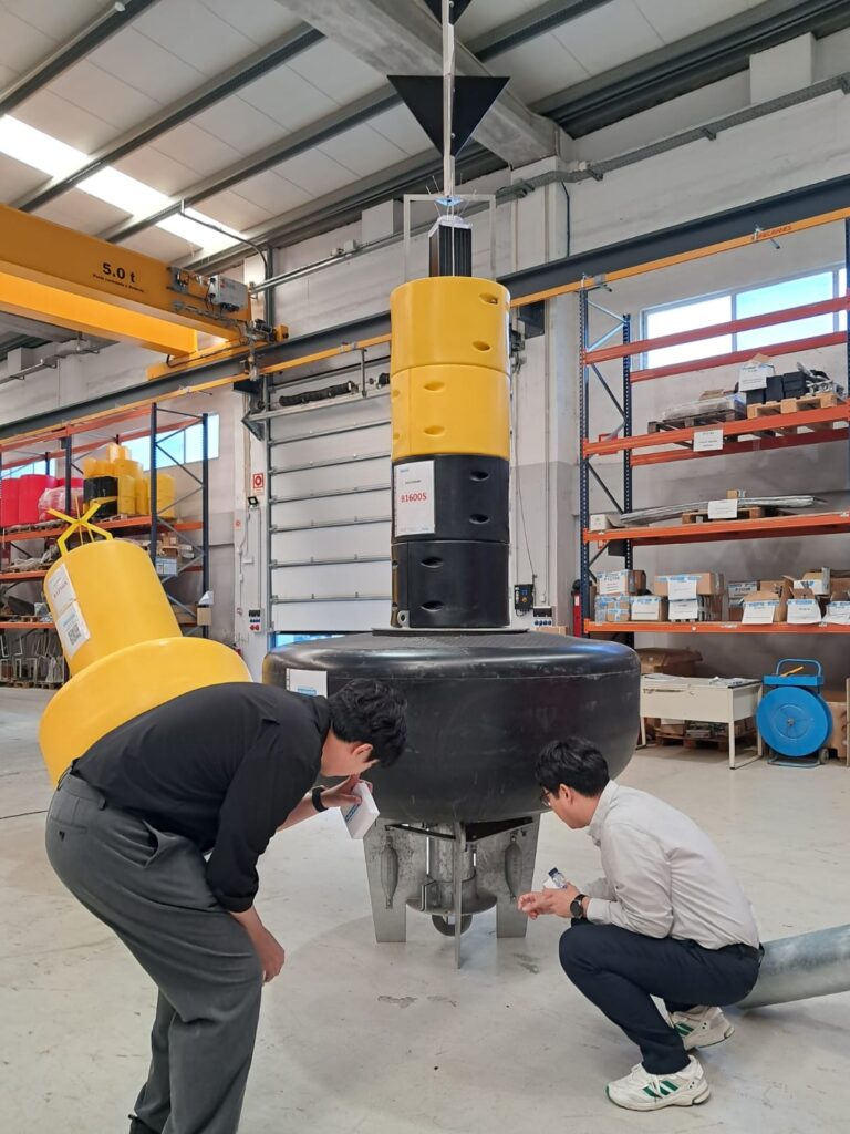 During the technical visit, students had the opportunity to learn first-hand about some of the facilities that Almarin, in collaboration with Lindley, offers in the field of marine aids to navigation — including various EVO modular buoys and a 7-metre-high onshore beacon.