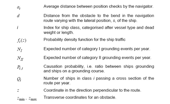 Source: IWRAP Mk II, Basic Modelling Principles for Prediction of Collision and Grounding Frequencies, (draft working document), Rev. 4, 2008.03.09, Peter Friis-Hansen, Technical University of Denmark. |