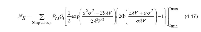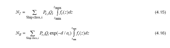 In which blackout λ is the frequency of blackout and vessel v is the operational speed of the vessel. The number of drifting groundings, Ndrift grounding , out of the Nship candidates of a particular ship type and size, can be calculated as: