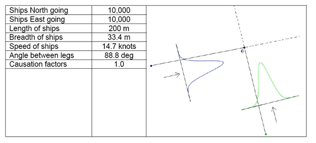 Source: IWRAP Mk II, Basic Modelling Principles for Prediction of Collision and Grounding Frequencies, (draft working document), Rev. 4, 2008.03.09, Peter Friis-Hansen, Technical University of Denmark. |