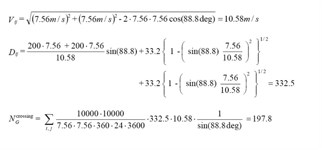 The geometric number of crossing collisions candidates for crossing waterways can similarly to Eq. (4.2) be expressed as: