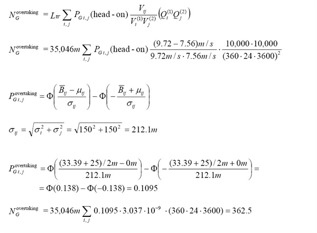 This test case calculates the number of Overtaking collisions per year on a leg where ships sail in the same direction but at different speeds.