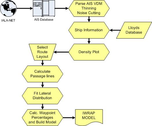 The Danish Maritime Safety Administration (DAMSA) has developed a set of tools external to IWRAP, that are capable of processing AIS data to obtain the above mentioned information and to compile it into an IWRAP waterway model file (XML).