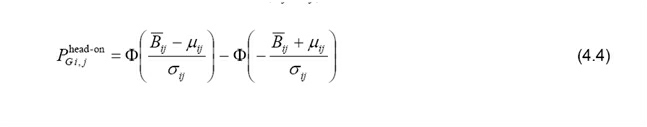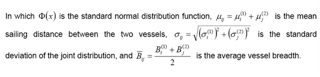 where Vij = Vi(1) + Vj(2) is the relative speed between the vessels and PG defines the probability that two ships will collide in a head on meeting situation. This probability is expressed as: