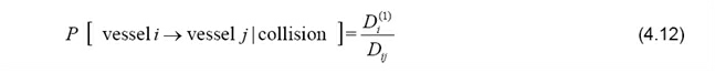 The probability of vessel i in waterway 1 striking vessel j in waterway 2 given a collision may then be determined as: